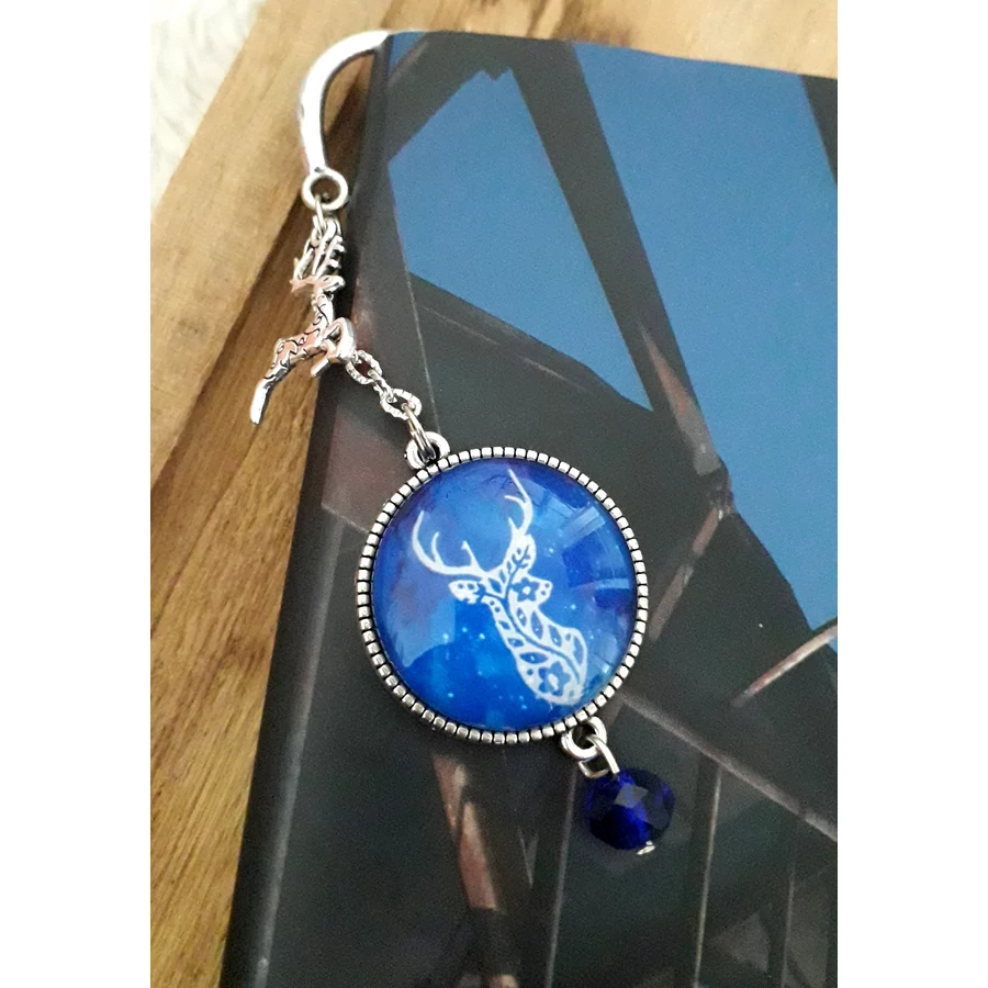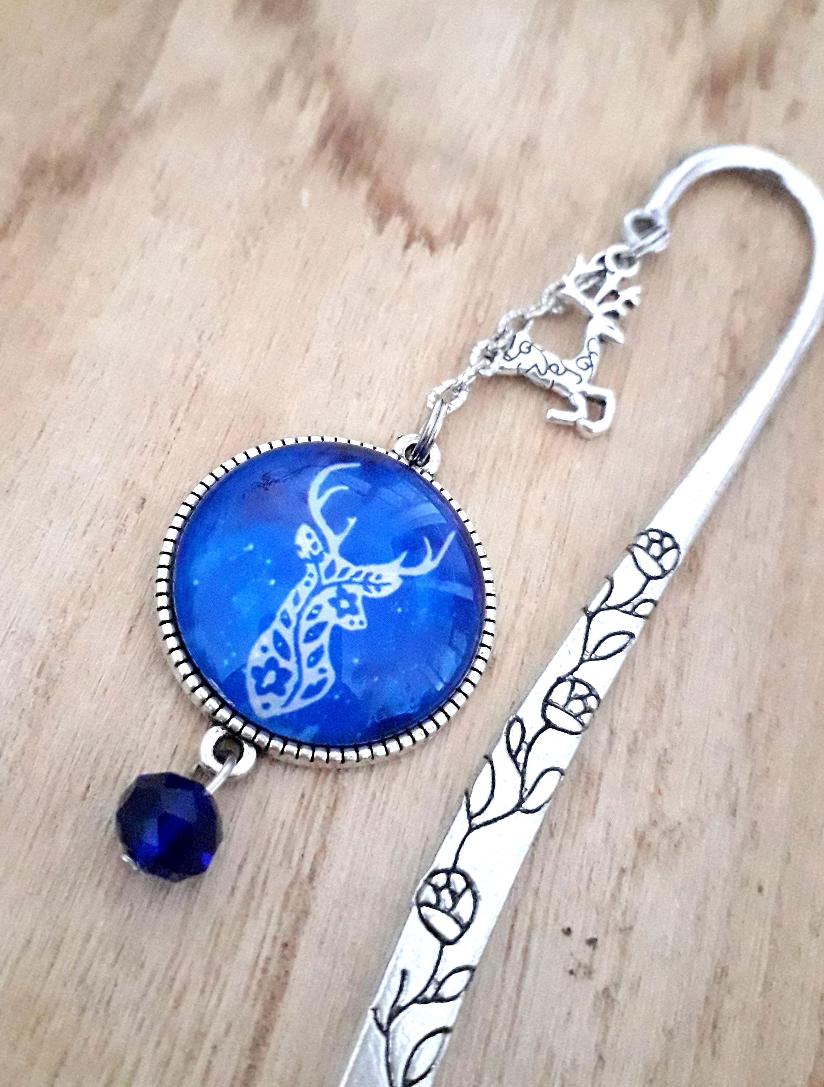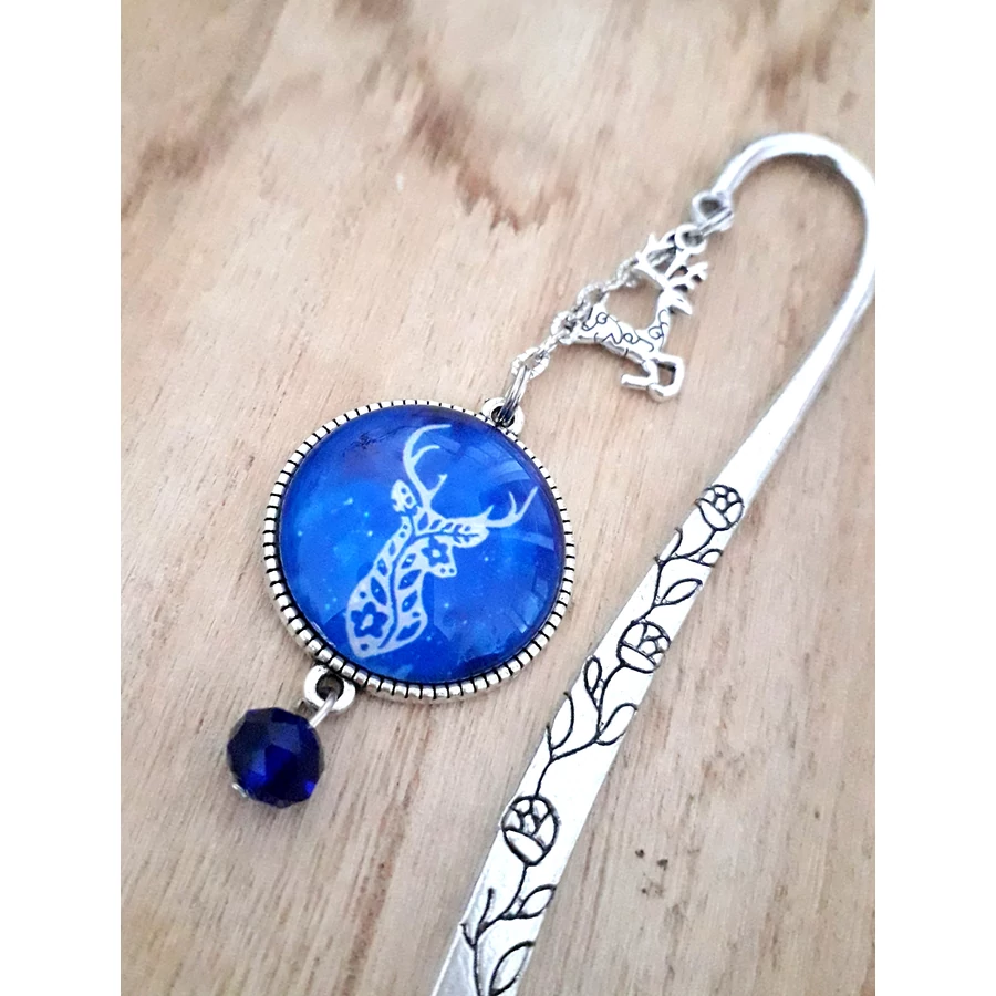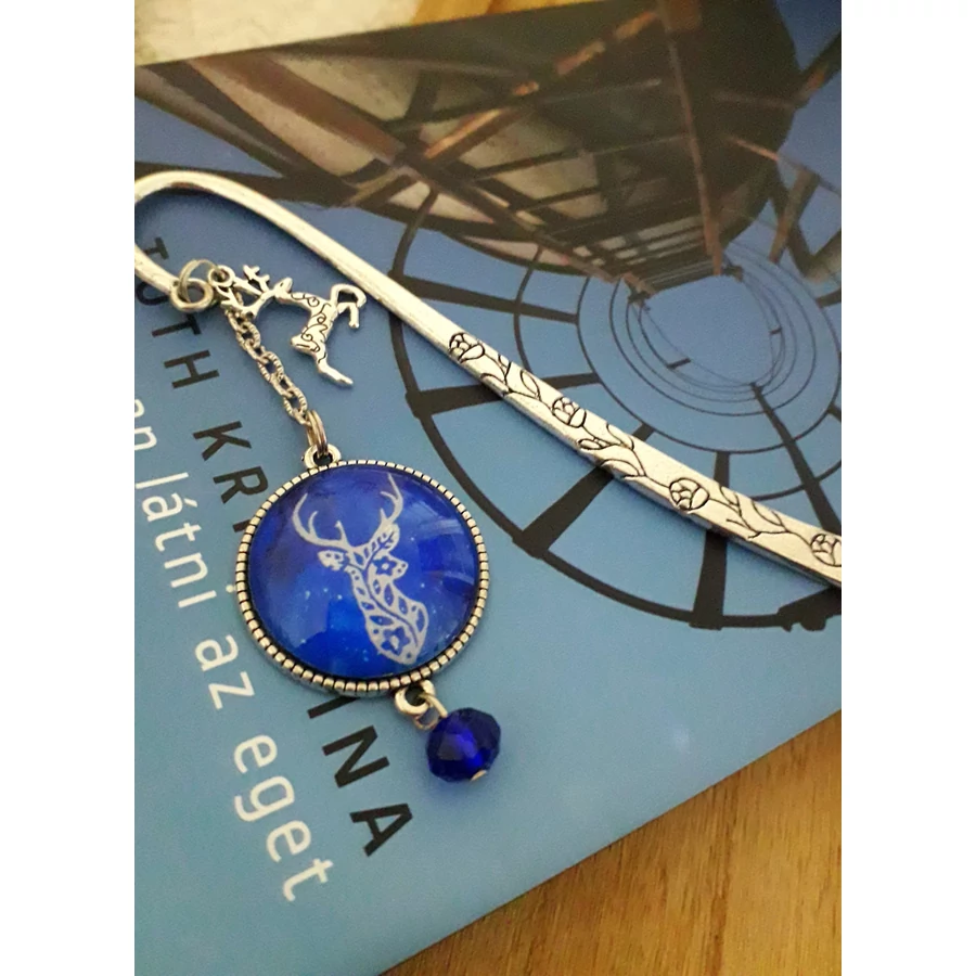 Ez a könyvjelző háttérben a világegyetem egy részletével kiemelve a szarvas motívumot, igazán egyedi ajándékötlet.